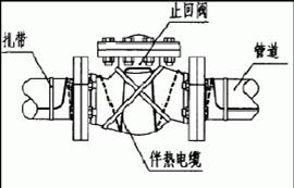 5、一切散熱體(如支架、閥門、法蘭等)應按設計圖請求預留所需電伴熱帶長度,將此段電伴熱帶纏繞于散熱主體上并固定。