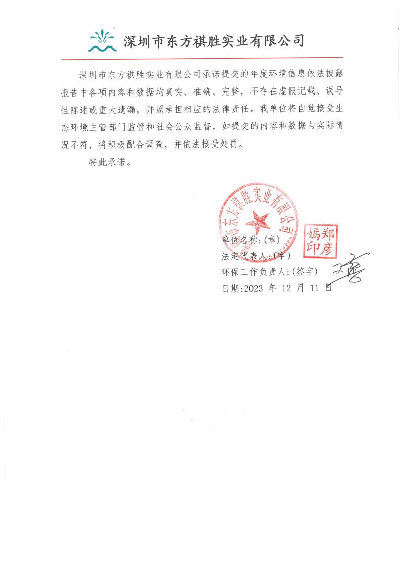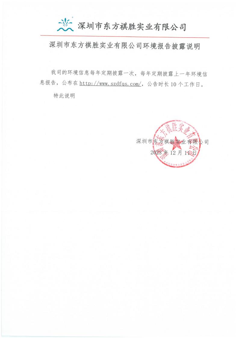 深圳市東方祺勝實(shí)業(yè)有限公司環(huán)境信息披露說(shuō)明