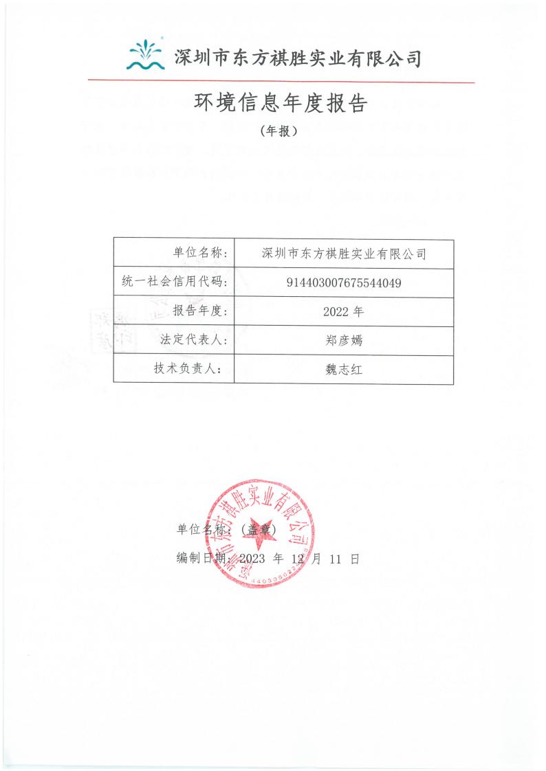 2022年深圳市東方祺勝實(shí)業(yè)有限公司環(huán)境信息公示