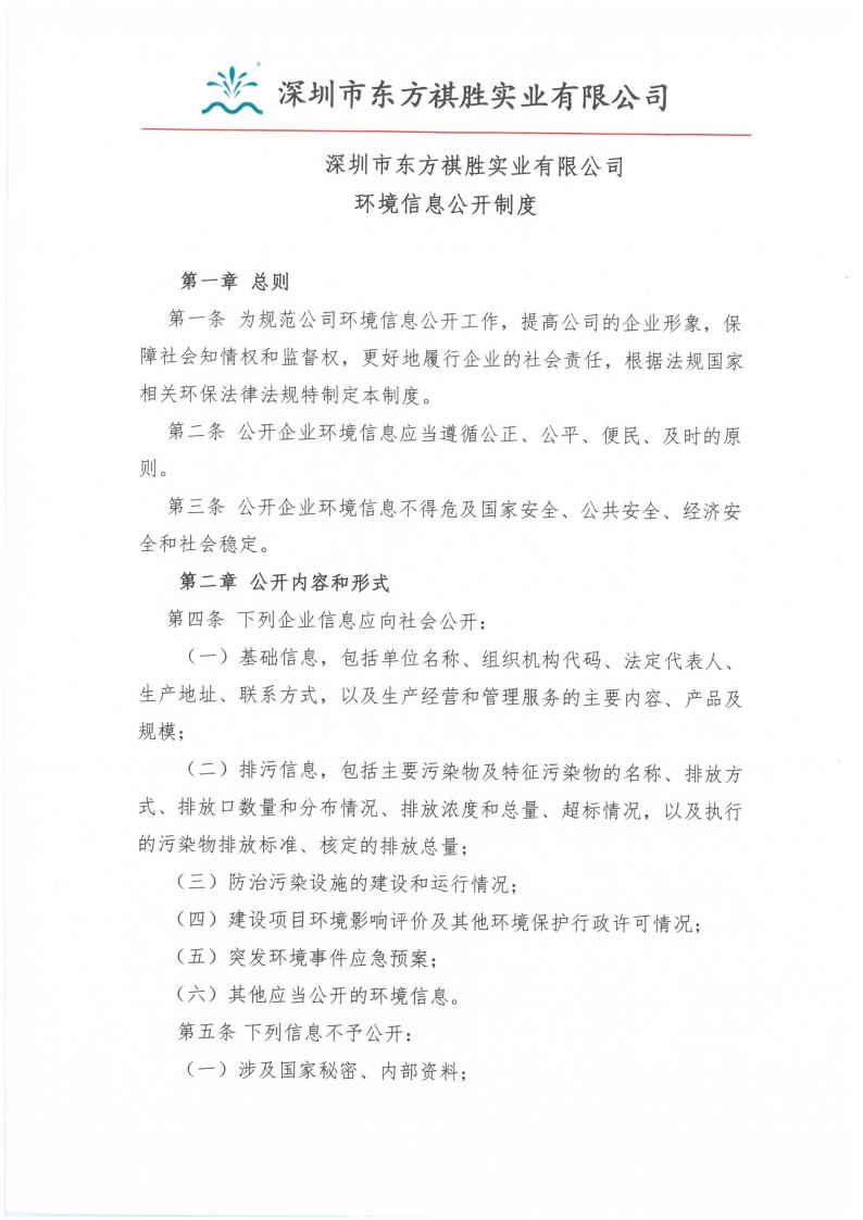 深圳市東方祺勝實(shí)業(yè)有限公司環(huán)境信息公開工作制度
