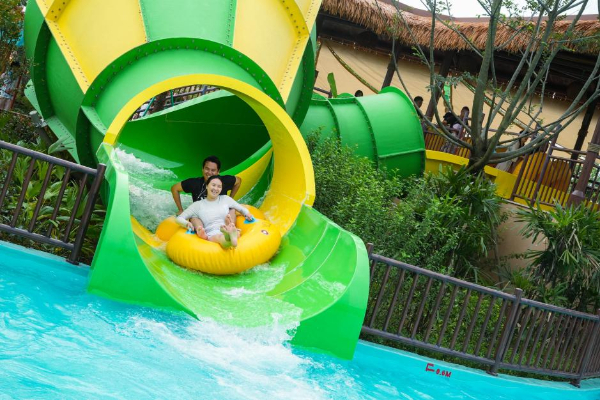 游客們從近20米高的《大喇叭》上乘坐皮筏自最高處滑下,盤旋加速,盡情尖叫;在《嬉戲池》中悠閑漂流,在《颶風灣》中感受浪花拍打的樂趣。無論是尋找刺激的年輕人,還是想要享受親子時光的家庭游客,都能找到適合自己的游樂項目。