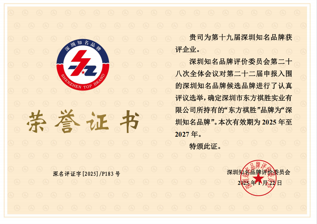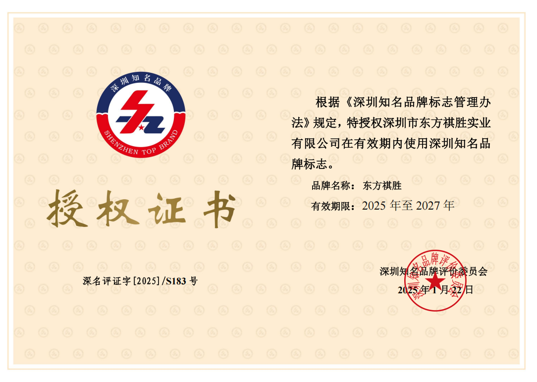 自2022年獲“深圳知名品牌”以來,東方祺勝公司從技術(shù)創(chuàng)新、產(chǎn)品創(chuàng)新、服務(wù)創(chuàng)新等多渠道入手,不斷擦亮東方祺勝品牌、提升服務(wù)水平,成績斐然。