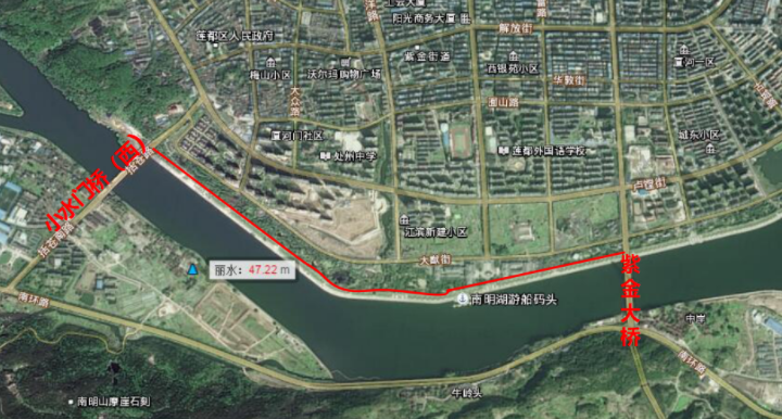 霧帶東至紫荊大橋西至小水門橋和濱江景觀帶,全長2.5公里。沿線擁有應星樓、南明樓、百米浮雕群等知名景點,是市民及游客休閑漫步的打卡地。