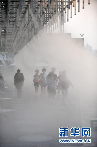 新華社上海7月9日電(唐薇薇)7月的上海進(jìn)入盛夏季節(jié),高溫伴著濕熱的梅雨天氣,令人悶熱難耐,但是游客對世博的熱情絲毫不減。如何為廣大游客防暑降溫?園區(qū)有關(guān)部門多管齊下,遮陽棚、遮陽傘、電風(fēng)扇、噴霧設(shè)備等營造出一片難得的清涼之地。