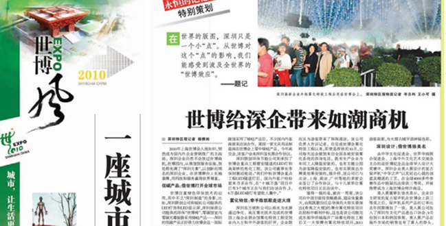 世博注重綠色環(huán)保技術(shù)的應(yīng)用,其中不乏“深圳制造”的身影,比如,深圳聯(lián)創(chuàng)公司和銳拓公司提供的led燈飾和led顯示屏,深圳綠盾公司提供的環(huán)?!笆啦┮巍?,零碳館室內(nèi)零碳無毒裝修采用綠蛙產(chǎn)品……深圳的低碳產(chǎn)品正好借力世博會這一國際大舞臺,打開全球市場。