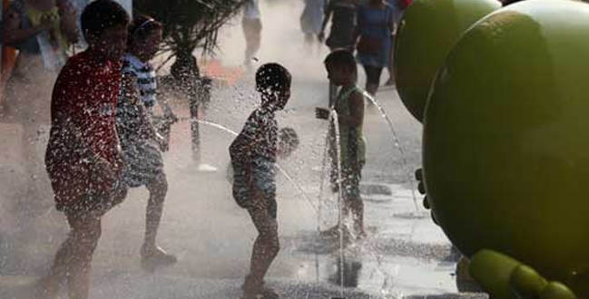 人民網(wǎng)8月12日電(記者屠知力) 8月12日,高溫酷熱又卷土重來,今天申城熱辣無比,浦東今發(fā)紅色高溫預(yù)警。徐家匯最高氣溫達(dá)到了39.6℃,浦東的最高氣溫更是達(dá)到了40.0℃。世博園39.0℃。世博開足噴霧降溫,游客在霧里消暑。